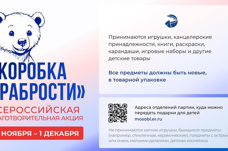 Каждый может принять участие в акции партии «Единая Россия» «Коробка храбрости» и подарить детям игрушки, книги, канцелярские принадлежности, раскраски или настольные игры.