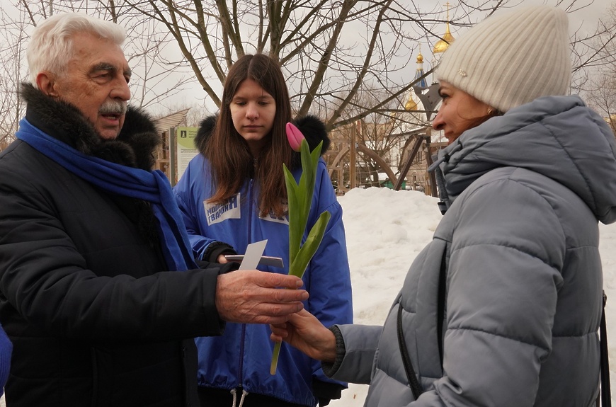 Депутаты городского Совета и волонтёры «Молодой Гвардии Единой России» провели акцию «Вам, любимые!», в рамках которой подарили реутовчанкам букеты тюльпанов и открытки. Кроме того, прошли мастер-классы «Букет» от молодогвардейцев, «Магнит с пожеланием» и практическое занятие от школы скорочтения.
