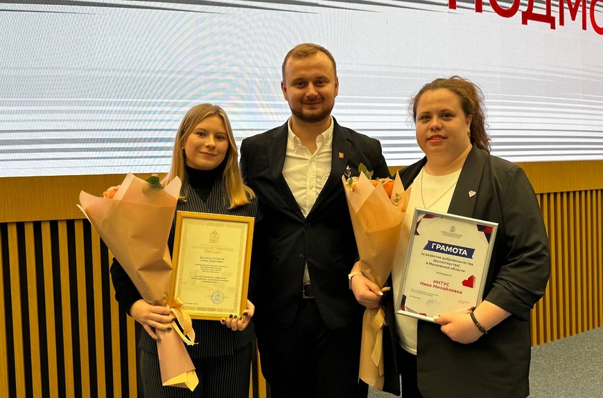 Волонтеров из Реутова, Софью Шинкареву и Нину Интус, торжественно наградили в Доме Правительства Московской области на мероприятии, посвященном Дню волонтера Подмосковья.